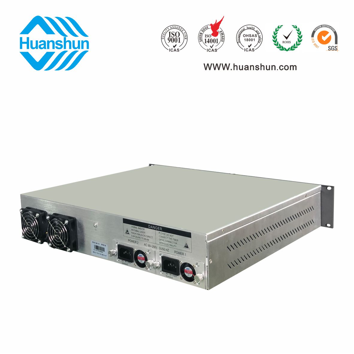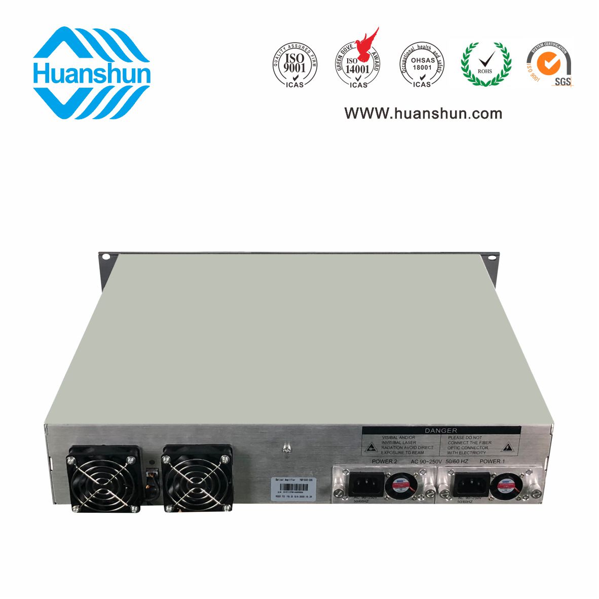 19 " 2U/3U標(biāo)準(zhǔn)機(jī)箱,-5 ~ +10 d Bm輸入,32路標(biāo)稱(chēng)規(guī)格(16、17、18、19、20、21、22、23dBm)放大輸出,并支持下調(diào)-2dB,安全連接模式,NF ≤ 5dB(0dBm時(shí));內(nèi)置FWDM合波器,插播損耗 ≤ 1dB;雙模塊熱插撥電源,AC90 ~ 255V或DC-48V供電,RJ45標(biāo)準(zhǔn)網(wǎng)管(支持SNMP、WEB)