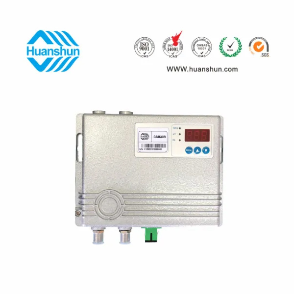 環(huán)順GS86/10040R室內(nèi)光接收機(jī)是為適應(yīng)無(wú)源光(PON)入網(wǎng)光纖接入樓道(FTTB)而設(shè)計(jì)的低功耗光接收裝置。采用高靈敏度光電池,砷化鎵鎘用于低噪聲放大,砷化鎵推挽放大用于末級(jí)放大,RF單通道主輸出最大輸出106dBuV或雙2x102dBuV在-7dBm輸出電平。內(nèi)置EOC插入功能(數(shù)據(jù)通道5~65MHz)。外置高精度防雷線性電源,LED接收電源元件指示,由于主設(shè)備性能優(yōu)越,加上精心設(shè)計(jì)的電路,從而保證了高性能和可靠性。