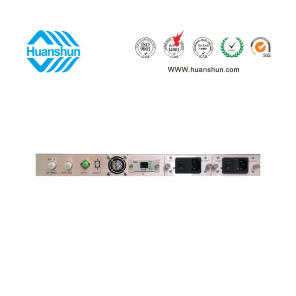 RF80 ± 5 dBuv 輸入,ITU 1550nm, ≥ 7、10 dBm 輸出;1U標(biāo)準(zhǔn)機(jī)箱,雙模塊熱插撥電源,AC90 ~ 255V或DC-48V供電,RJ45標(biāo)準(zhǔn)網(wǎng)管(支持SNMP、WEB)
