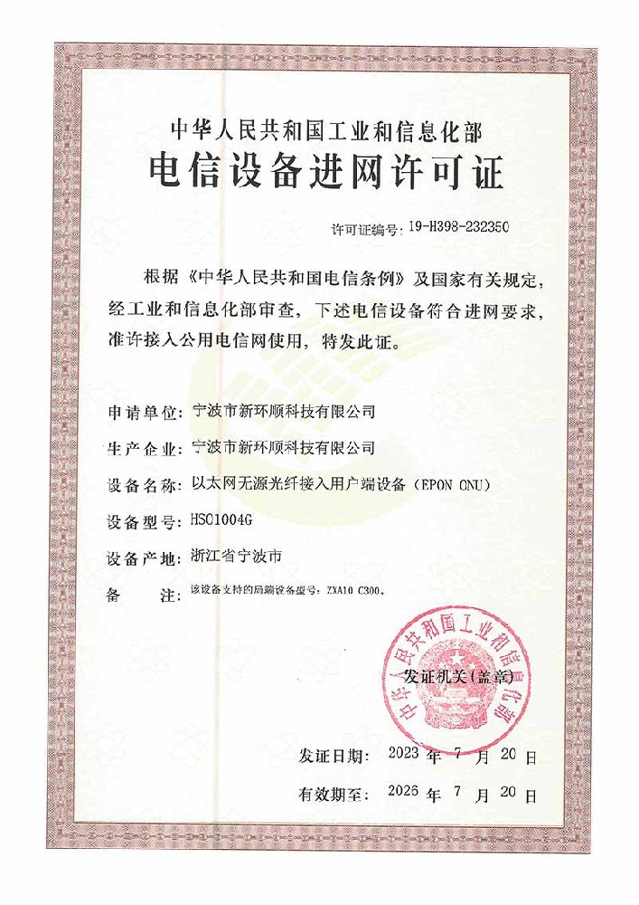 電信設(shè)備進(jìn)網(wǎng)許可證