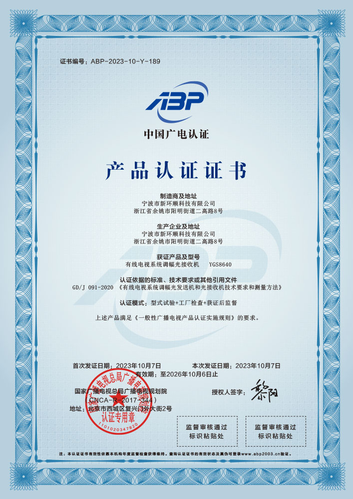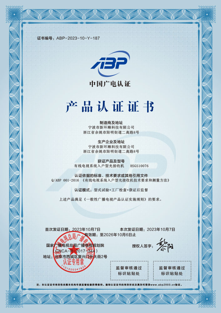 入戶(hù)型光接收機(jī)認(rèn)證
